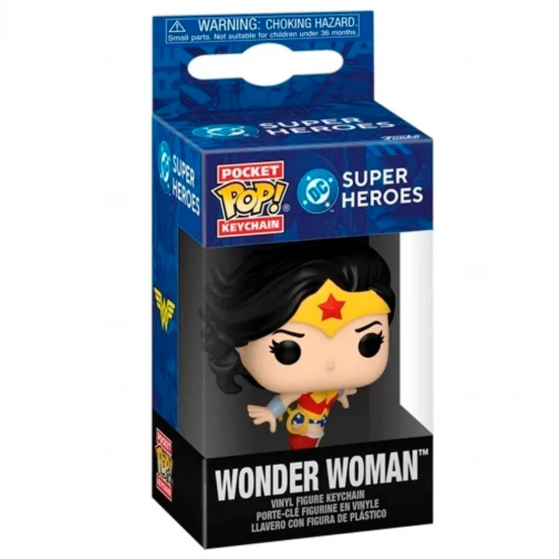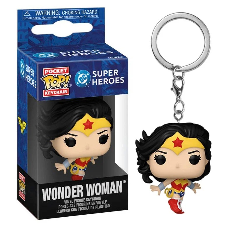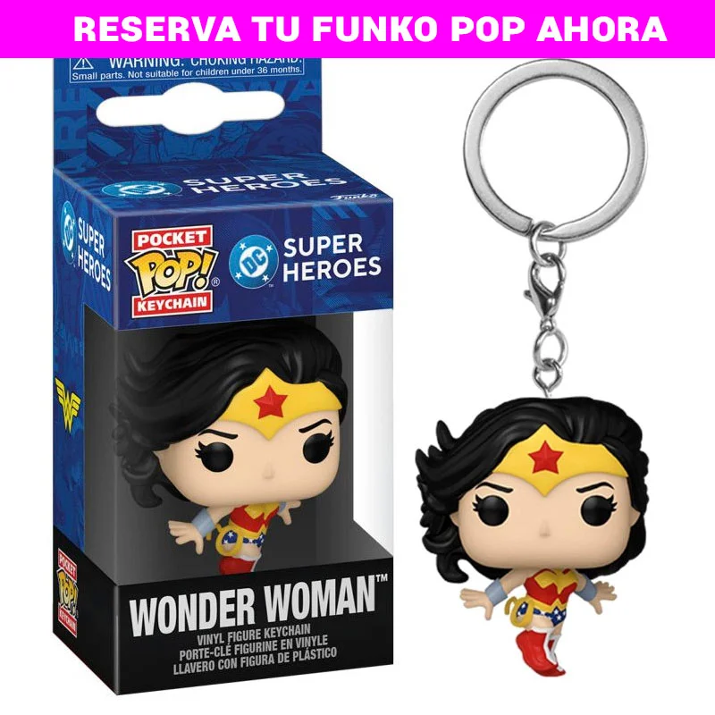 Este Llavero Pocket Pop es más que un simple adorno; es una declaración de poder. La figura captura a Wonder Woman con su traje clásico (rojo, azul y dorado), lista para el combate con su tiara y sus brazaletes de la sumisión. El diseño de vinilo, con el estilo adorablemente cabezón de Funko, logra transmitir toda la intensidad y la elegancia del personaje, pero en un tamaño que cabe perfectamente en tu bolsillo. Si buscas un regalo espectacular, un detalle para un seguidor de la heroína, o simplemente quieres una pieza que visualmente sea impactante y represente la fuerza, esta es la elección perfecta. Llévala en tu mochila, en tu bolso o con tus llaves, ¡y que su presencia te recuerde que el mundo necesita héroes!