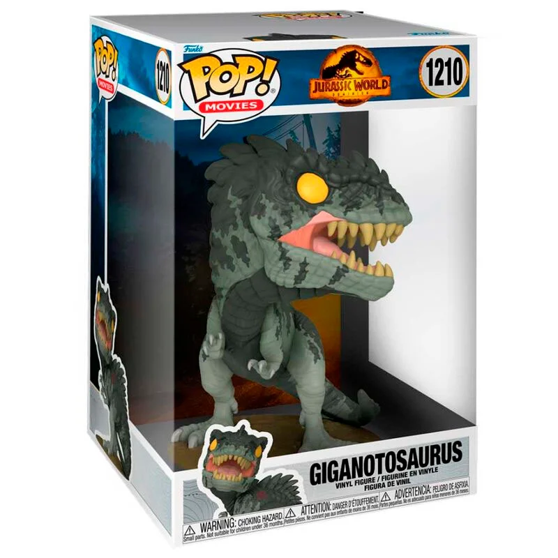 Esta figura Super Sized de Funko Pop captura al Giganotosaurus en todo su esplendor, con un diseño estilizado que, aunque mantiene el toque adorable de Funko, no pierde ni un ápice de su amenaza. La edición, la número 1210, destaca precisamente por su escala imponente (25 cm), que la hace visualmente espectacular. El detalle de su cráneo robusto y su postura agresiva lo hacen inmediatamente reconocible como el gigante que puso en jaque al T-Rex. Si buscas un regalo inolvidable para un coleccionista, un amante de los dinosaurios que ya tiene el resto de la colección, o simplemente quieres una pieza central que cause un impacto visual masivo, esta es la elección perfecta.
