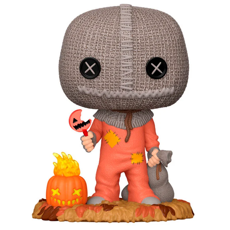 Lo que hace que la figura número 1956 sea excepcional es el cuidado en los elementos icónicos del personaje. Funko ha recreado perfectamente su máscara de saco de arpillera, con sus ojos de botón y la soga al cuello, ocultando su verdadera naturaleza. En esta versión, Sam sostiene una calabaza tallada que simboliza su control sobre la noche. Cada detalle, desde los parches en su pijama naranja hasta la textura rugosa del saco, está diseñado para que sientas la atmósfera de la película en tu propia estantería.