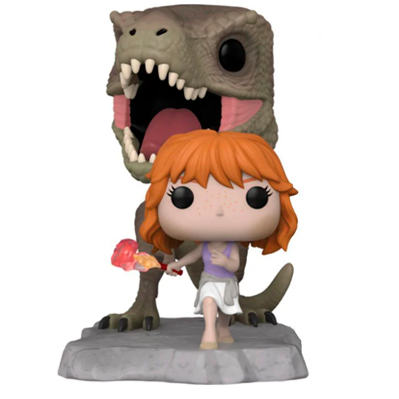 Este Funko número 1223 es especial ya que se trata de Claire huyendo de un T-Rex, tratándose de uno de los personajes más importantes de Jurassic Park. Además, el personaje se muestra con una bengala en la mano.