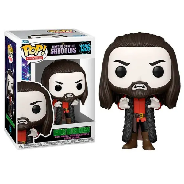 Nandor el Impecable es el protagonista, siendo el personaje principal de Lo que hacemos en las Sombras. Este Funko de 9 centímetros de tamaño representa a Nandor con los brazos estirados como si fuera atacar a alguien . No te quedes sin tu figura FUNKO POP Nandor el Impecable 1326, ideal para ampliar la colección.