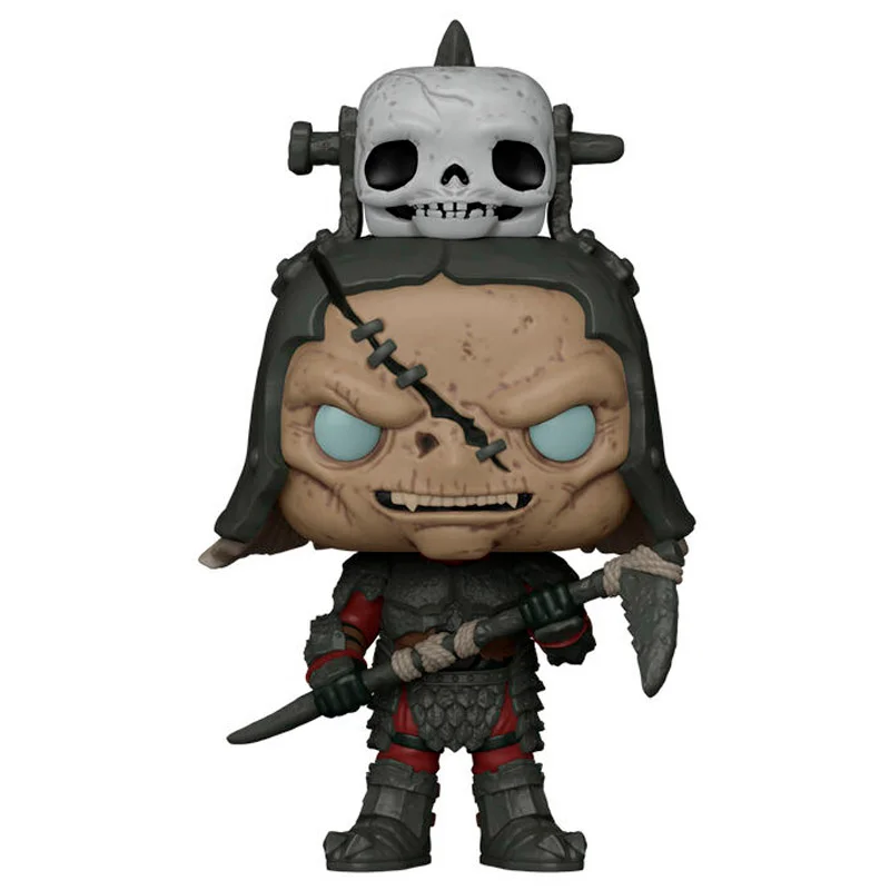 Lo que hace que la figura número 1984 sea una pieza excepcional es la fidelidad técnica a su apariencia cinematográfica. Funko ha logrado plasmar el rostro surcado por cicatrices de Guritz (conocido por los fans como «Skully») con una precisión asombrosa, resaltando su fisionomía orca única. Cada detalle, desde su armadura de hierro oxidado y cuero hasta sus característicos «huesos» o pinchos que sobresalen de su casco, está diseñado para transmitir una sensación de peligro inminente. La aplicación de pintura en tonos tierra, grises y ocres refuerza el aspecto sucio y endurecido por la batalla que define a los capitanes de las legiones de Gothmog.