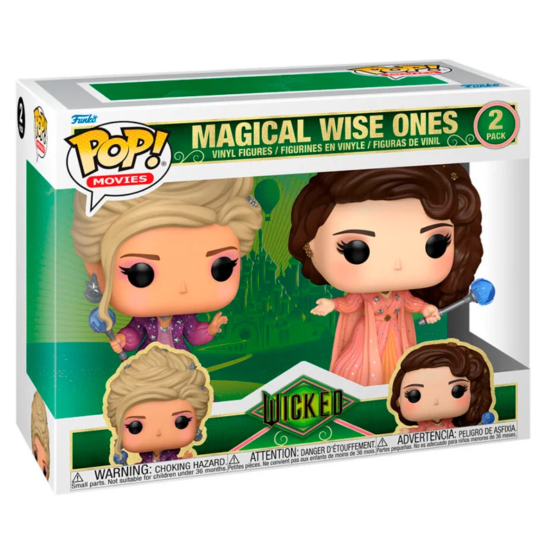 ¡La magia de Oz llega por partida doble! El Pack 2 FUNKO POP Sabios Mágicos – Wicked es una pieza de colección imprescindible para cualquier fan del musical más icónico de Broadway y su nueva adaptación cinematográfica. Este pack exclusivo reúne a los dos pilares del conocimiento y el misticismo dentro de la historia de Elphaba y Glinda, capturando la esencia del poder y la sabiduría que define a los grandes magos y sabios de la Ciudad Esmeralda.